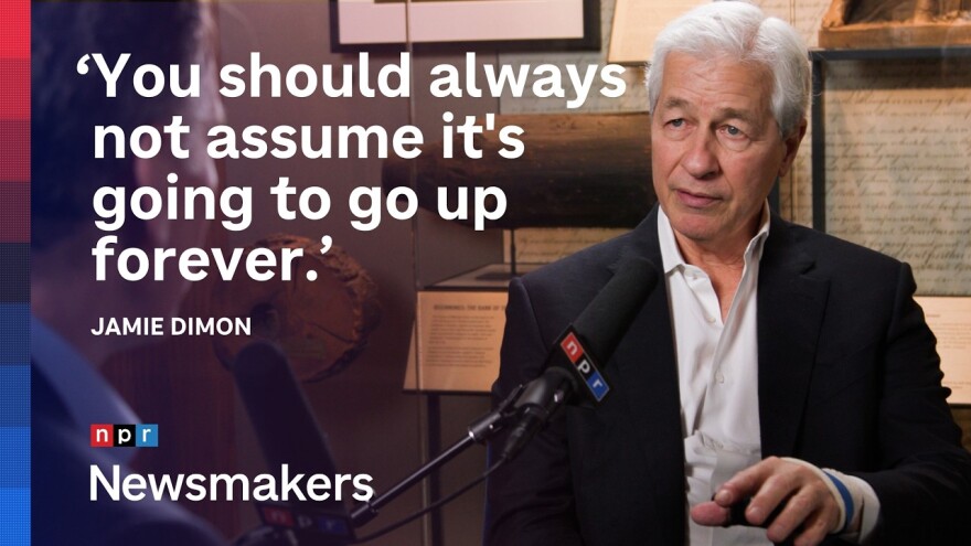 In an interview on NPR’s Newsmakers video podcast, Dimon said he didn’t worry much about the way President Trump’s contradictory statements tend to send financial markets sliding and soaring again.