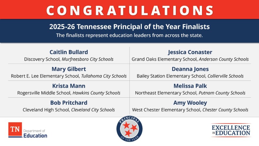 "I am honored to extend my congratulations to this year's Tennessee Principal of the Year Finalists," said Kelley Harrell, the 2024–25 Tennessee Principal of the Year. "These exceptional school leaders represent the best of what it means to lead with purpose, inspire excellence, and build thriving school communities across our great state. Each of these leaders brings a unique vision to the principalship, but what unites them is a shared belief in the power of education to transform lives. They are problem-solvers, community-builders, and tireless advocates for equity and opportunity. I celebrate your accomplishments and cheer you on as you carry this torch forward."